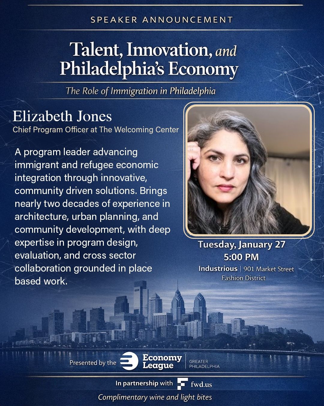 The Economy League and FWD host a timely, evidence-based discussion on immigration’s vital role in Philadelphia’s economic future. Held at Industrious, this business-focused convening will explore how global talent shapes our regional workforce, innovation capacity, and long-term competitiveness.