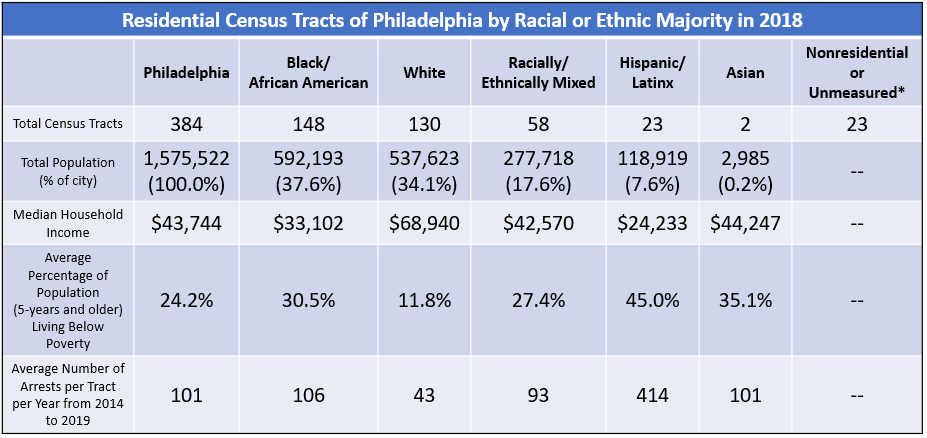Chart of Residential Census Tracts of Philadelphia by Racial or Ethnic Majority in 2018